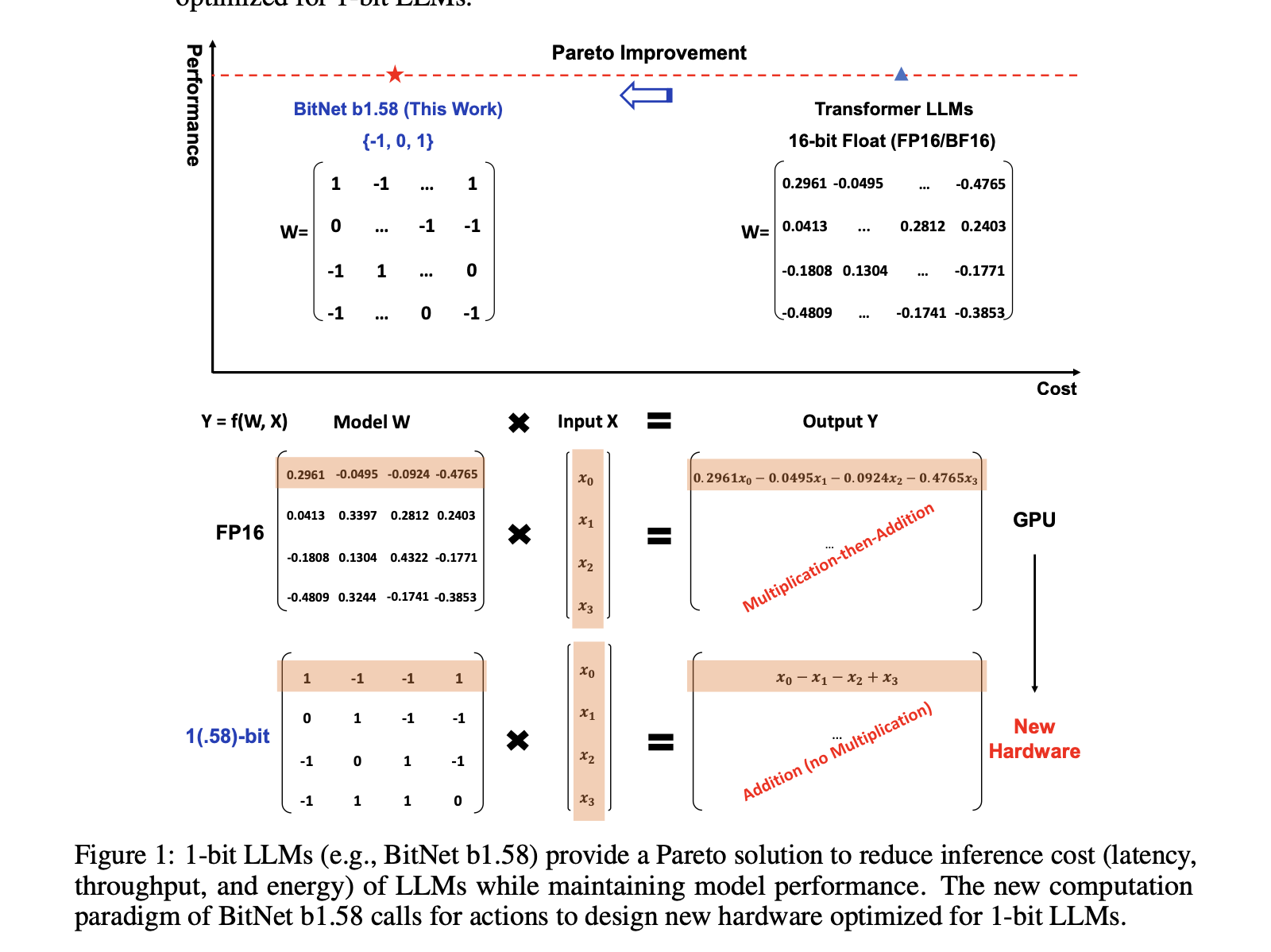 resource: 1-bit-LLMs.pdf BitNet b1.58 every single parameter (or weight) of the LLM is ternary {-1, 0, 1}