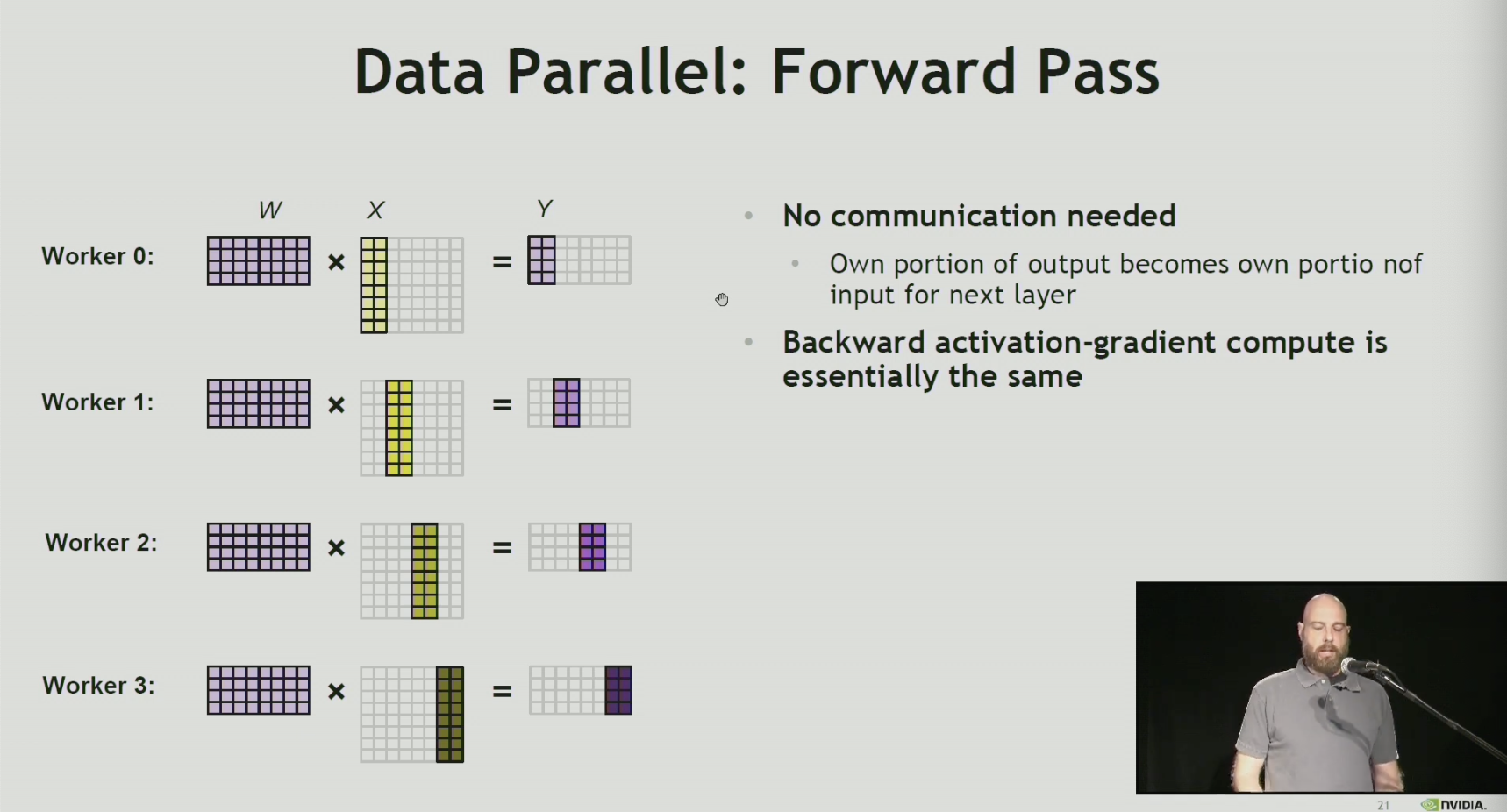 - responsible for compute of a portion of data (training minibatch)
